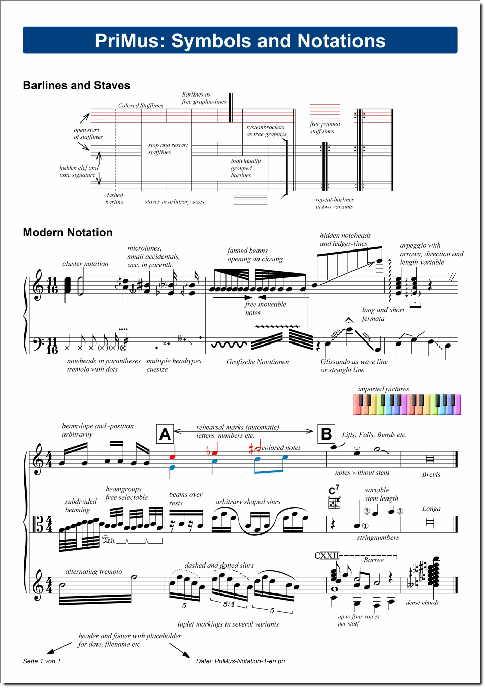 PriMus offers all kinds of advanced notation-symbols and -capabilities. To get an idea of this features click on the page or download it in PDF-format to print it out in full quality.